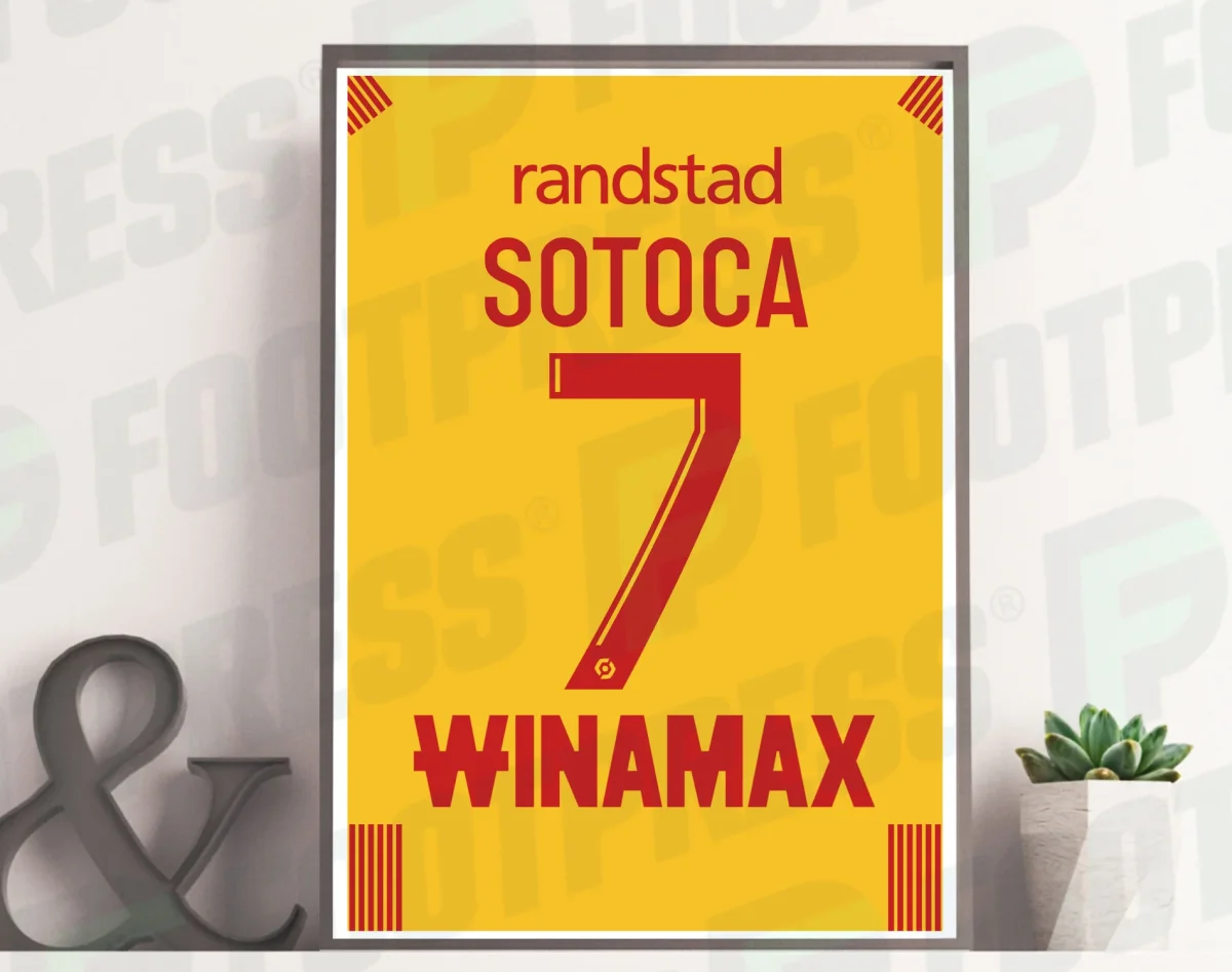 Affiche en hommage au maillot du RC Lens porté durant la saison 2023/2024. Face arrière au nom de Florian Sotoca.