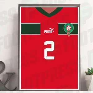 Affiche Achraf Hakimi Maroc 2022 Domicile – Coupe du Monde – Maillot Face arrière