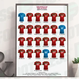 Affiche Équipe du Maroc – Coupe du Monde 2022 (Hakimi, Ziyech, Ounahi…)